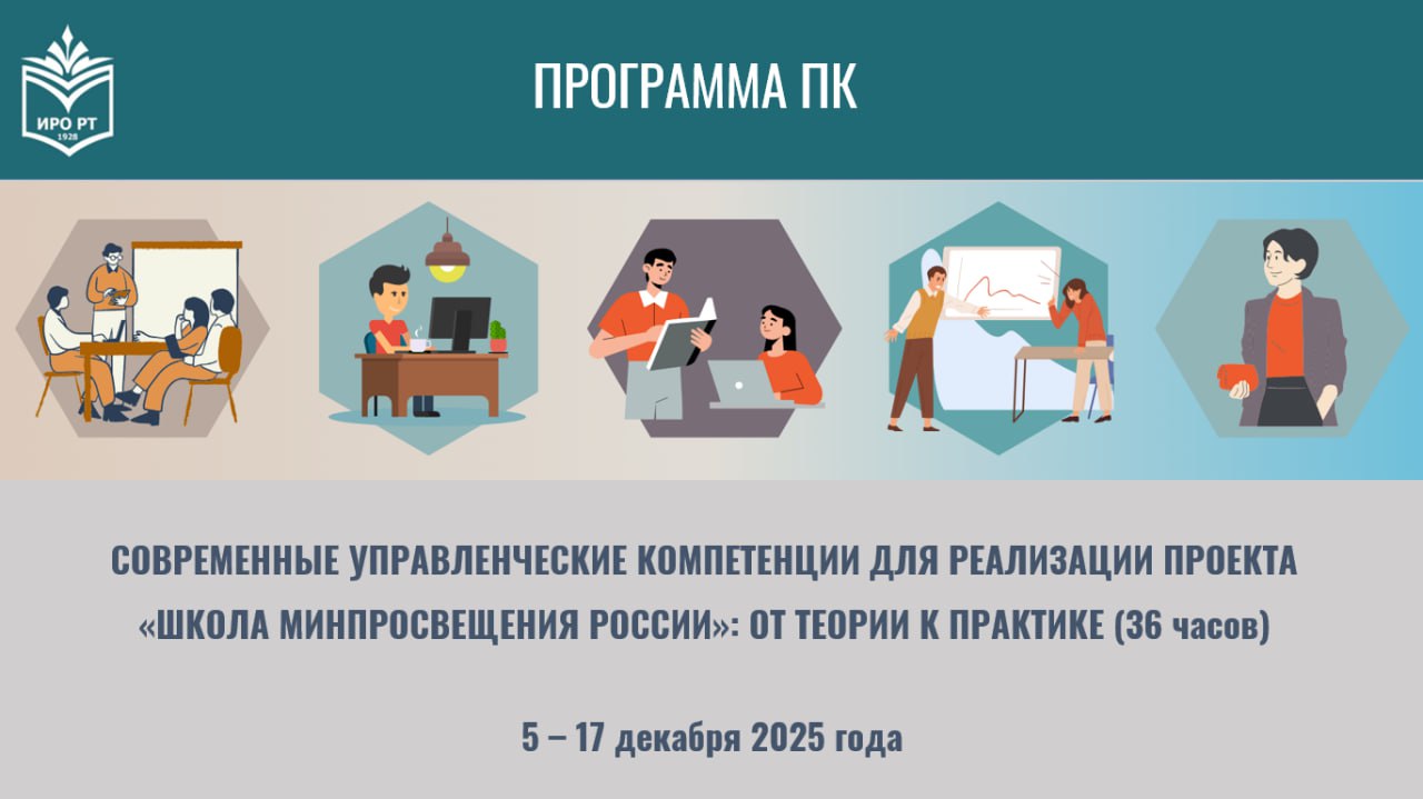 С 5 по 17 декабря 2025 года в Институте развития образования Республики Татарстан 250 представителей управленческих команд общеобразовательных организаций, показавших в ходе самодиагностики уровень «ниже базового», успешно прошли курсы повышения квалификации для, по программе «Современные управленческие компетенции для реализации проекта «Школа Минпросвещения России»: от теории к практике».