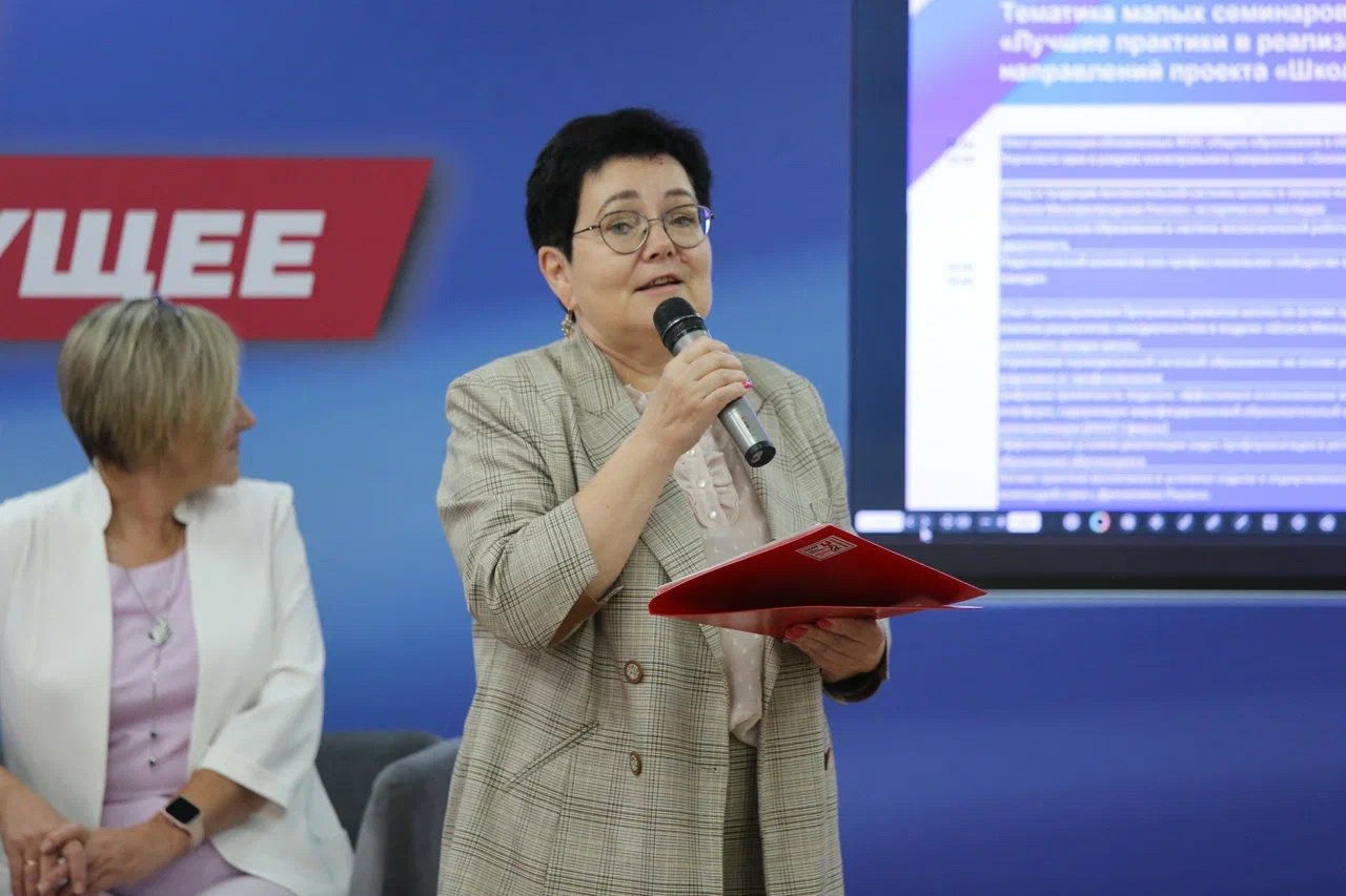 Пленарная часть была открыта выступлением регионального координатора Проекта Волковой Л.В. по теме «Проект «Школа Минпросвещения России» как механизм управления качеством общего образования».