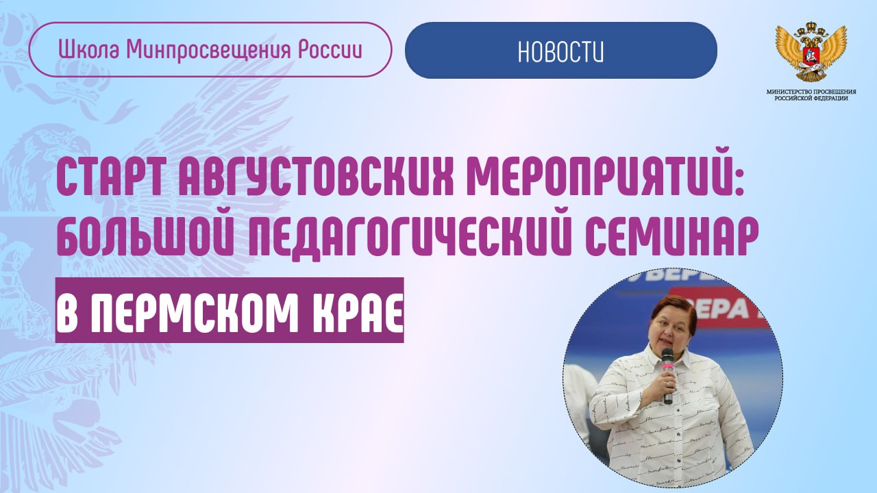 В Пермском крае цикл августовских встреч 19 августа открылся Большим педагогическим семинаром «Проект «Школа Минпросвещения России» в структуре направлений Стратегии развития образования Российской Федерации до 2030 года».