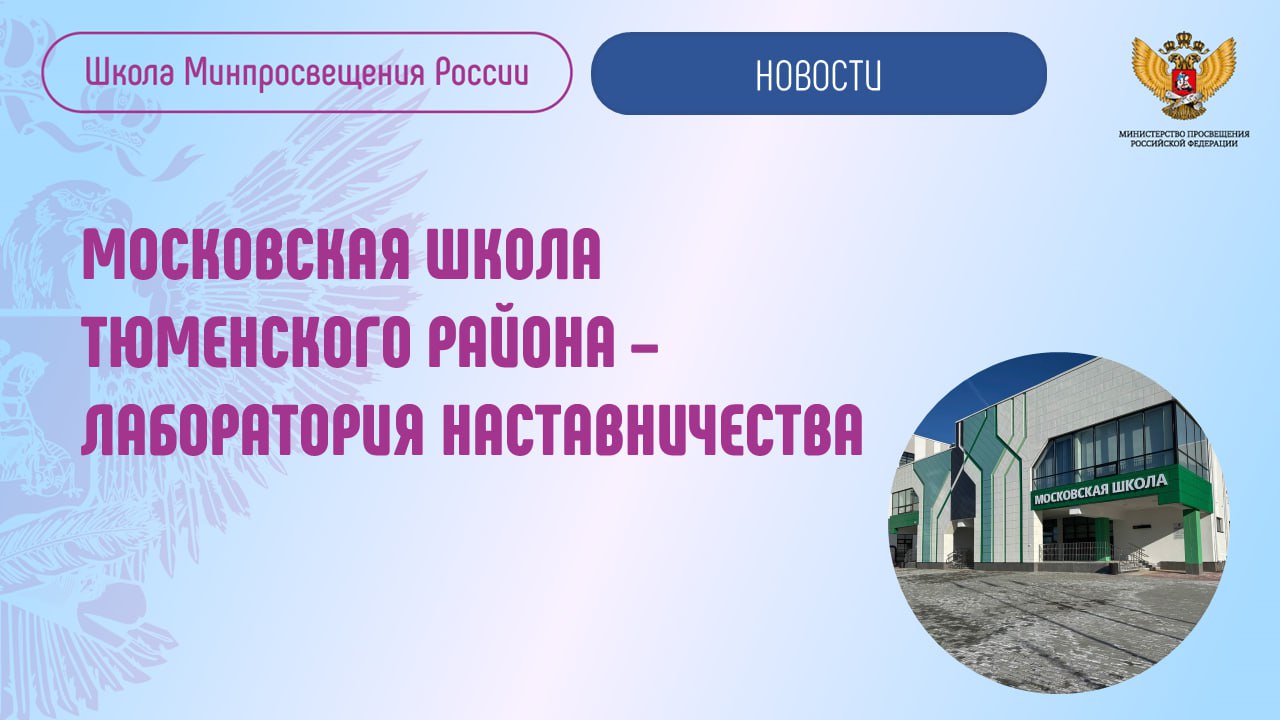 В рамках проекта «Школа Минпросвещения России» Московская средняя общеобразовательная школа Тюменского муниципального района стала региональным центром наставничества для школ региона и вошла в состав Наставнической лиги школ Тюменской области. Сегодня школа, разместившаяся в обновленном здании, не только демонстрирует высокие образовательные результаты, но и активно делится опытом реализации проекта «Школа Минпросвещения России» с педагогами всего региона, помогая им внедрять современные методики преподавания.